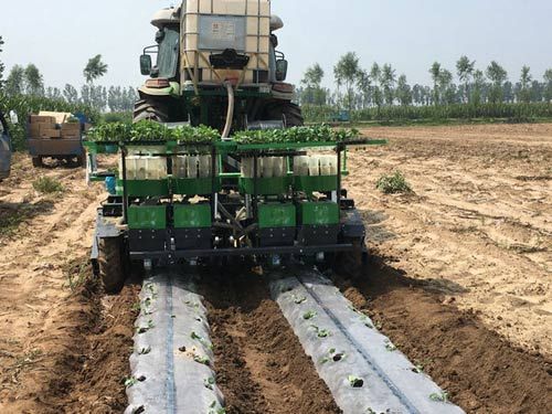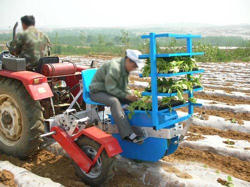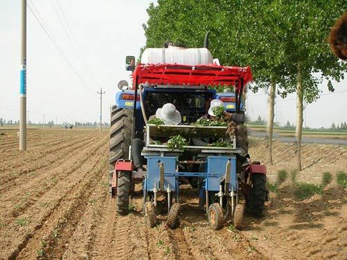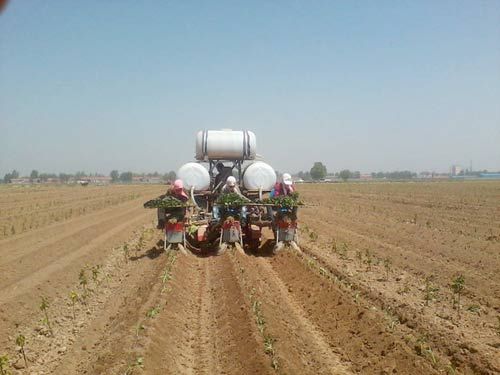 八行牽引式洋蔥苗移栽機工作現(xiàn)場