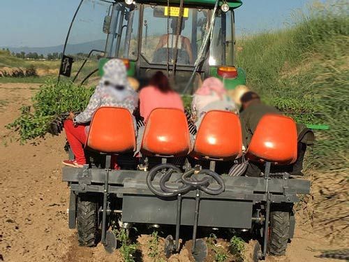 八行牽引式洋蔥苗移栽機工作現(xiàn)場